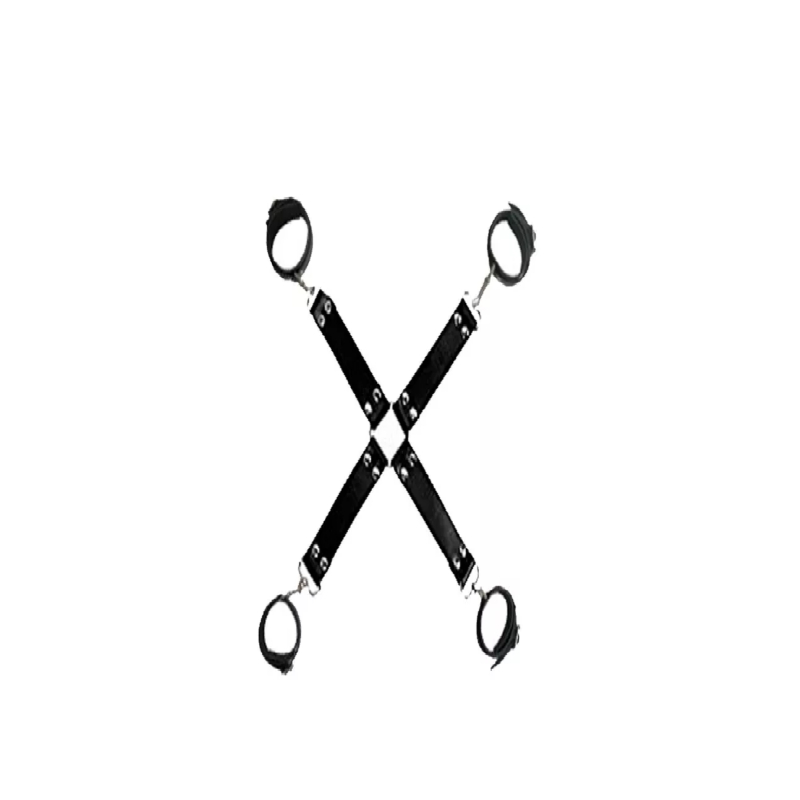 Esposas y Tobilleras En Cruz Simples (sin peluche) de cuero ecológico, Disfrutá del placer alternando los juegos de poder, dominación y sumisión con tu pareja sexual.