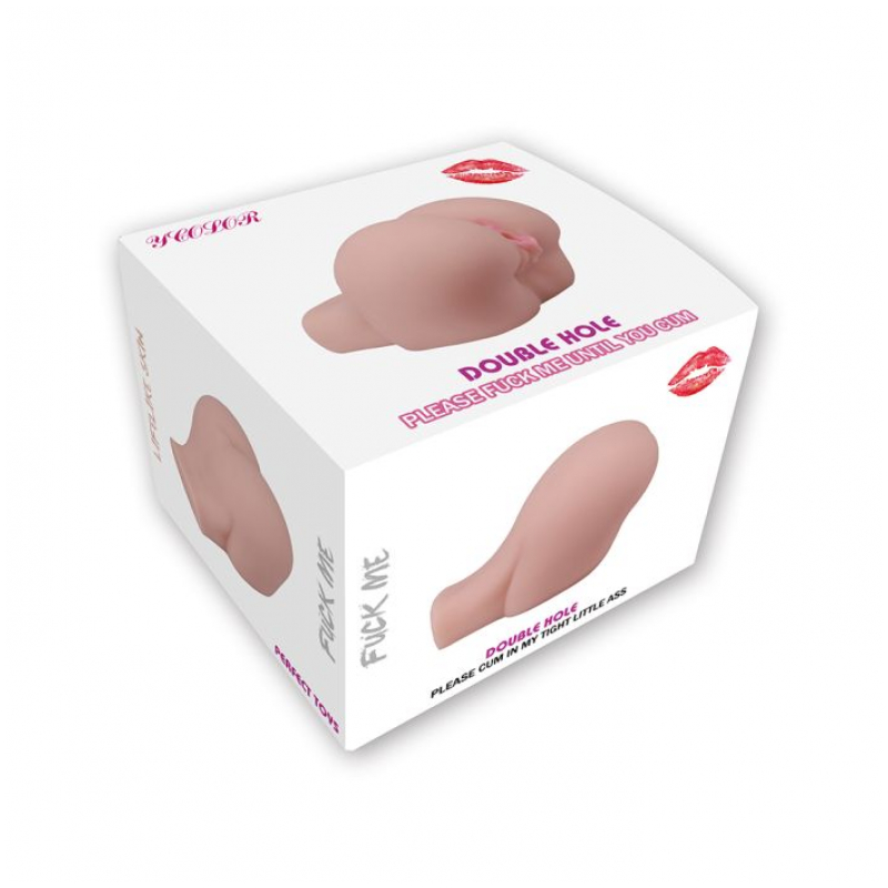 Pieza o modulo de silicona simil piel, realistica, forma de cola con doble cavidad texturada.