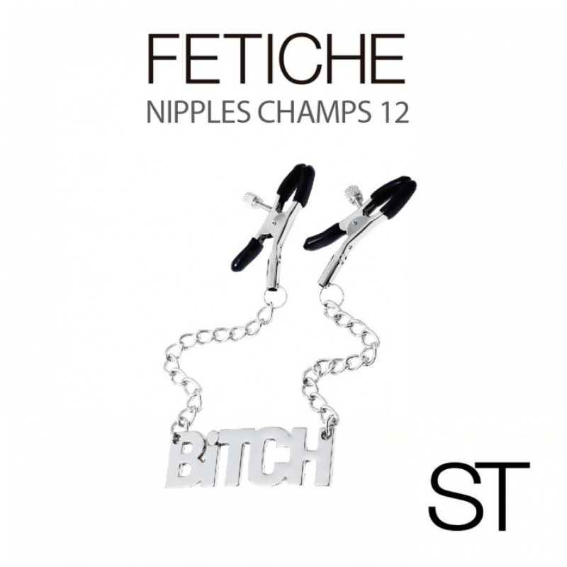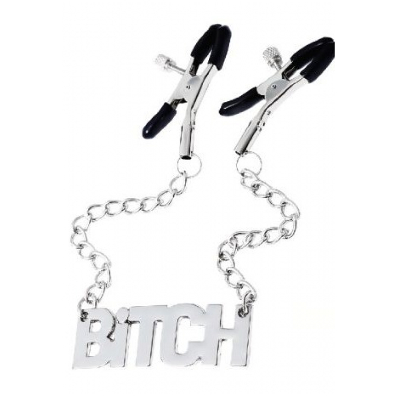 Pezoneras con presión regulable y cadenas con inscripción "bitch",