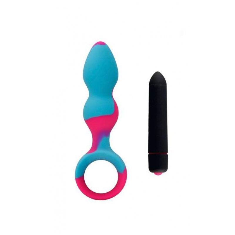 Kit de estimulador anal de silicona, escalonado, ayuda a relajar la zona intima, con tope o agarre seguro, mas micro bala a pilas con vibración para apoyar en cualquier zona del cuerpo y aumentar las sensaciones.