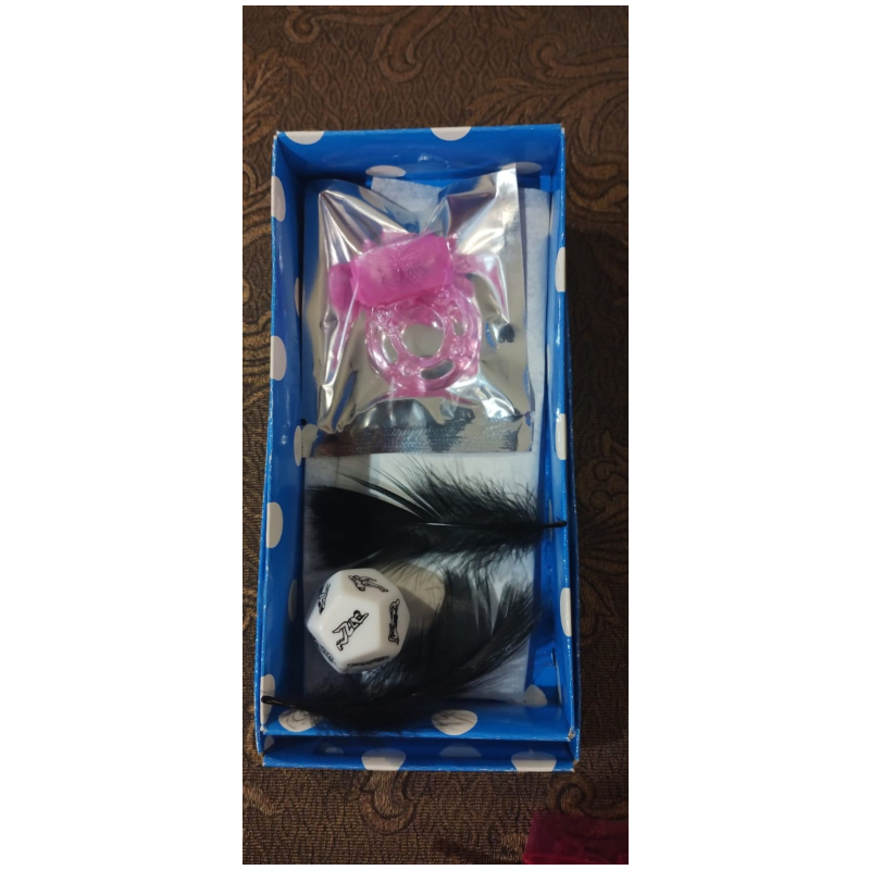 Regalo Erótico , anillo de silicona con vibración descártable, dado con posiciones del kamasutra para jugar en la previa del encuentro intimo con tu pareja, y un par de plumitas que aumentan las sensaciones.