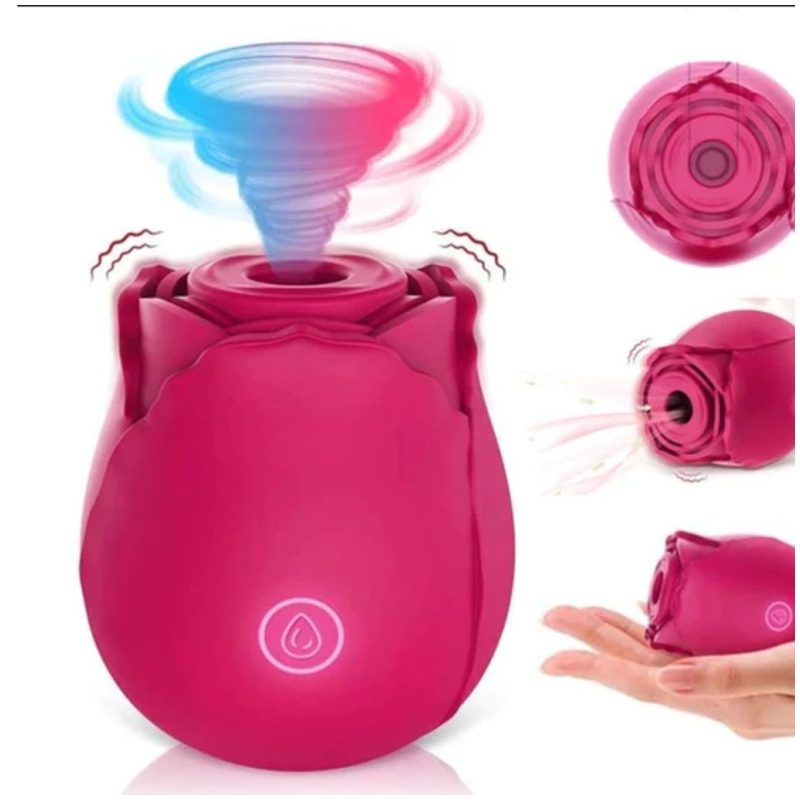 Estimulador de silicona, forma de flor con petalos, que aportan sensacion al tacto, centro con liberacion de aire en diferentes ritmos, que aumentan la circulación en cualquier zona del cuerpo mediante el apoyo,