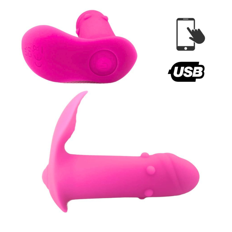 Estimulador que se puede usar debajo de la ropa interior, con aplicación para control a distancia.10 modos de vibración.Medidas : 8 cm x 2,5 cm aprox.