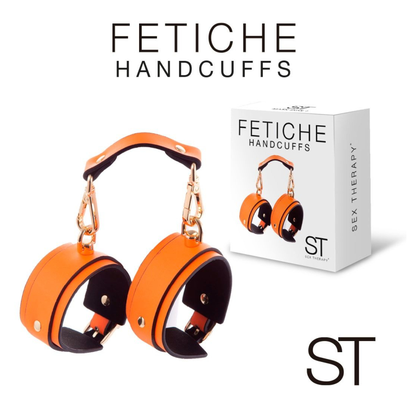 Esposas regulables de cuero con mosquetón. Color Naranja