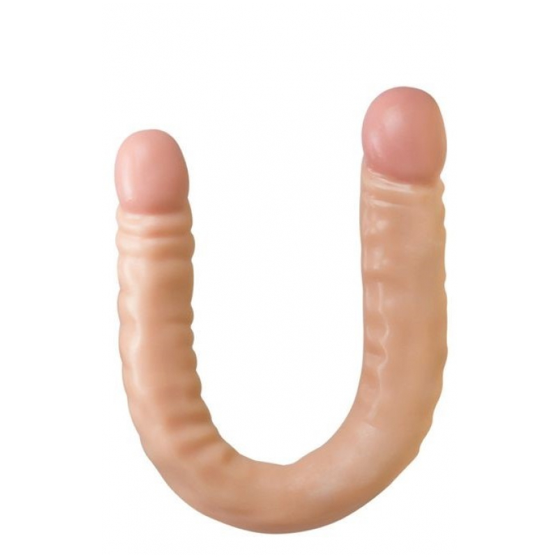 Dildo de silicona, texturado forma de pene doble punta, forma de U, extra largo, simil piel, flexible adopta diferente posisciones, para disfrutar en forma plena solo o en pareja.