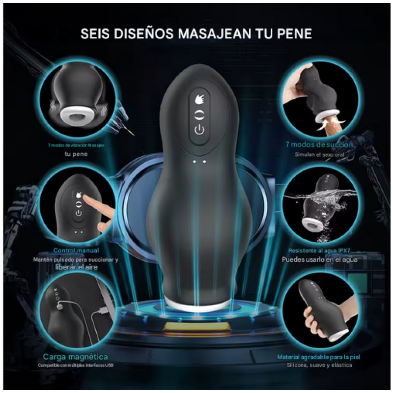 MASTURBADOR Con ajuste de 7 niveles velocidades.